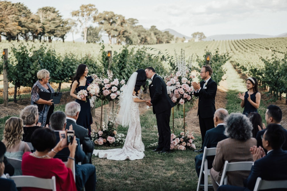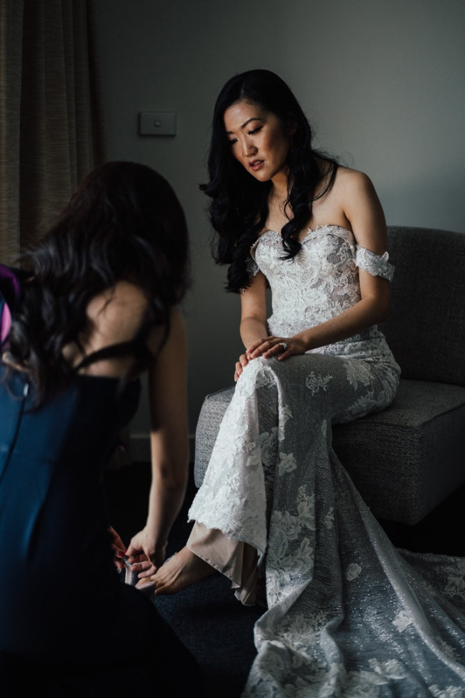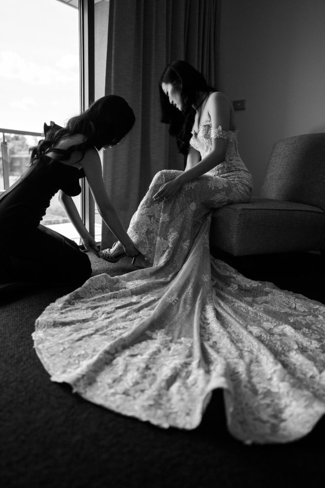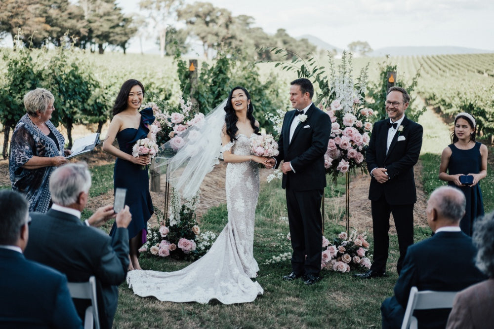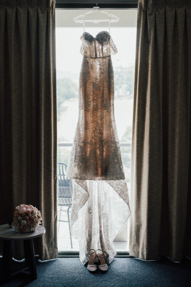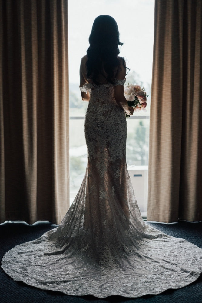 Eliza and Micahel wedding in Levantine Hill was an intimate celebration of their love with their close friends and family. Eliza wore the Nessie Gown in silver and ivory lace.