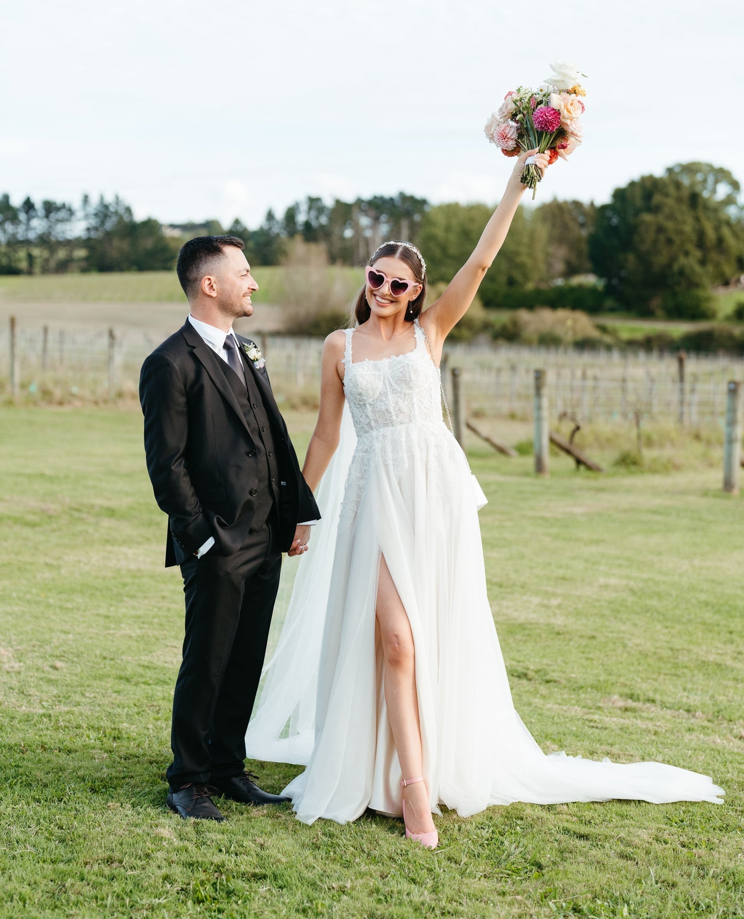 Our namesake Bride Frankie is positively glowing in her stunning Atelier Wu gown, as she and Luke promise each other a lifetime of love at Turanga Creek Winery. Rocking a pearl-encrusted jacket with her new name, we couldn't be happier for the two of them! Cheers to Love and laughter!