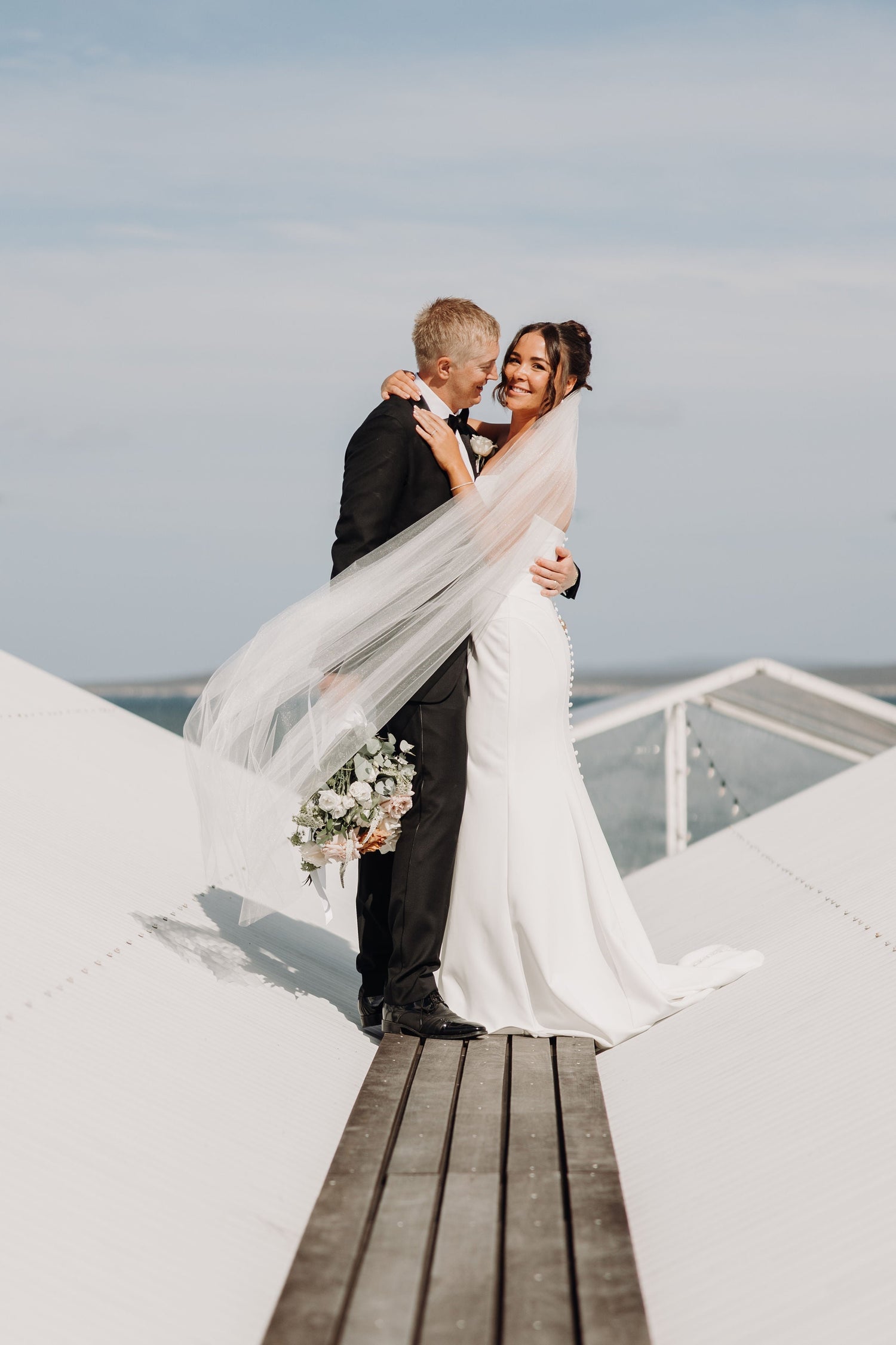 Glowing radiantly in her Tina Gown, Georgia and Nathan begin a lifetime together hand in hand, strolling off into the setting sun.
