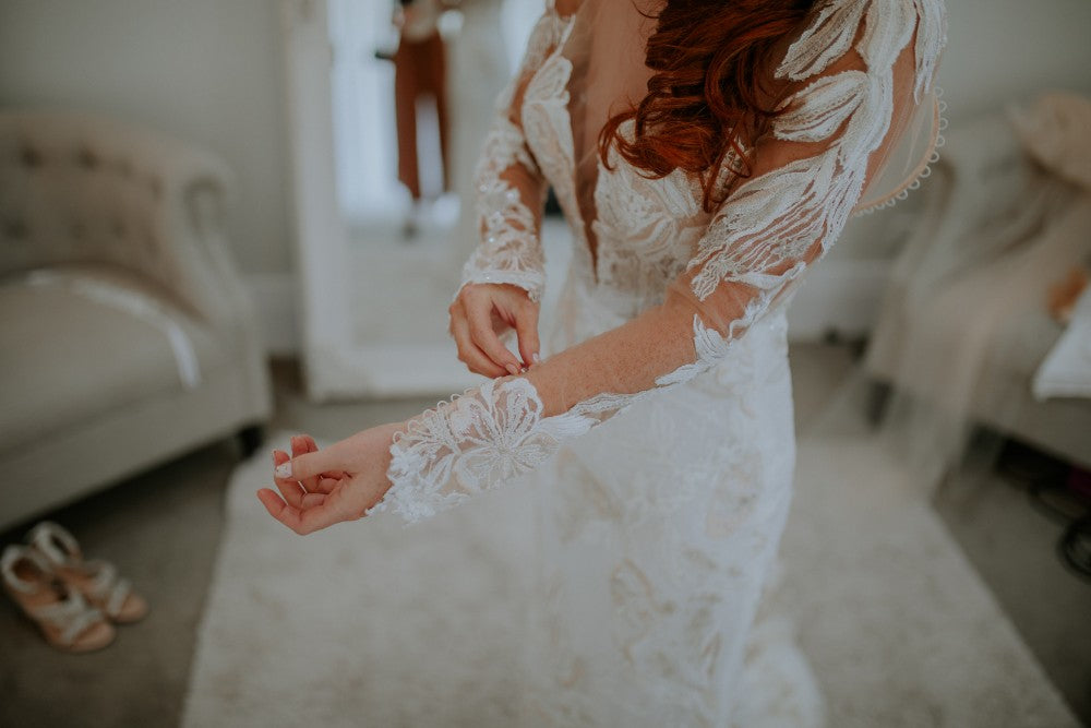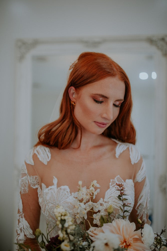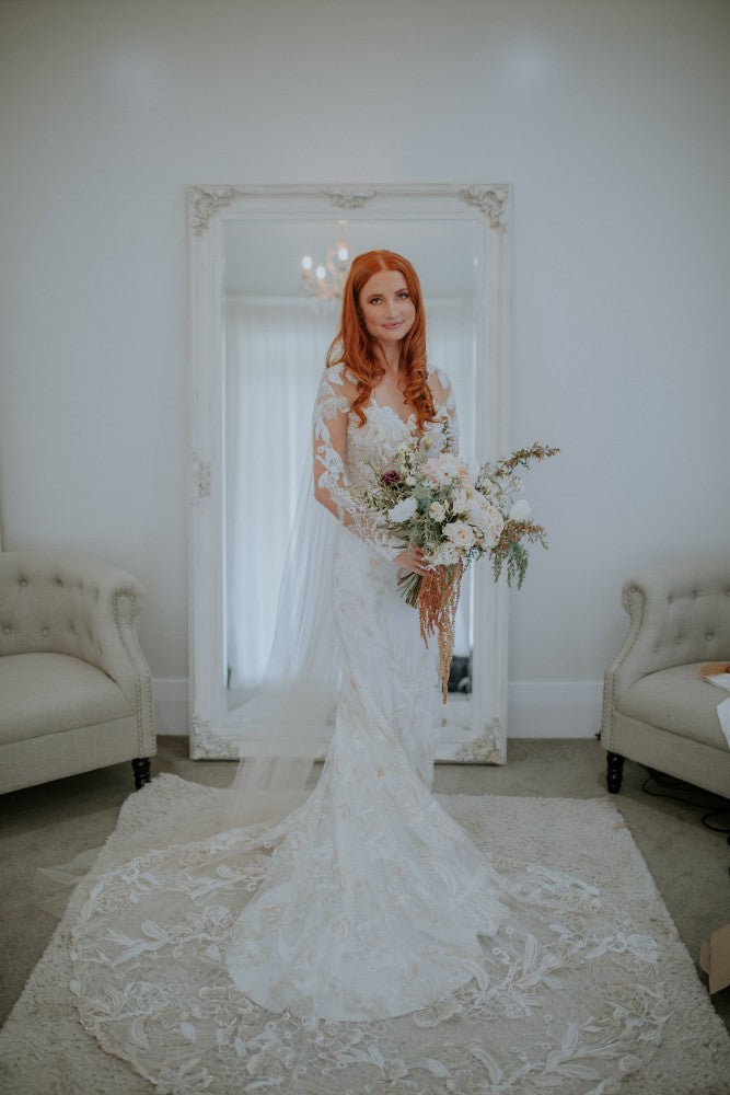"I saw a showstopper Jessica Couture ballgown in New Zealand Weddings & Honeymoons and thought it was the most amazing dress I had ever seen. For practical reasons I did not want a ball gown, but I was lucky enough to have Jessica herself caring for me when I was trying on dresses and mentioned how much I adored that gown. She said she had just the dress from her unreleased couture collection. I knew it was the one when I tried it on – I did not want to take it off. I felt like a woman, a wife to be. I had wanted something with a hint of colour, perhaps blush or gold so I adored the stunning lace in the gown with applique detailing of gold and nude throughout the ivory. I felt like a lace forest had grown up around me."