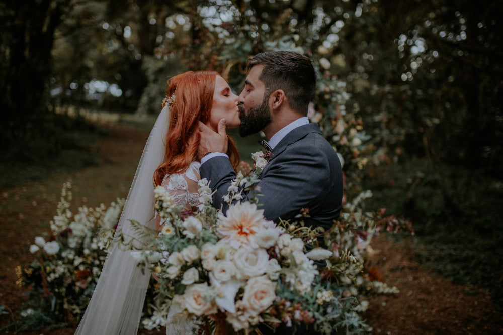 "Seeing Francois for the first time as I came down the aisle was so emotional and special. I would not trade that moment for anything. Our week was impacted so greatly by Covid that I could not believe we had made it until I was holding his hands in mine in front of nearly all of our nearest and dearest. We will always remember looking out at our amazing tribe of supportive friends and family in our stunning floral woodland creation as our ceremony ended. We could not believe that we managed to safely see our wedding come to fruition as everything was unravelling at top speed just days beforehand. It felt very sweet to have a celebration of love and family when we knew that a very challenging time was just around the corner. Our wedding day really was a timeless, soulful, dreamy fairy tale."