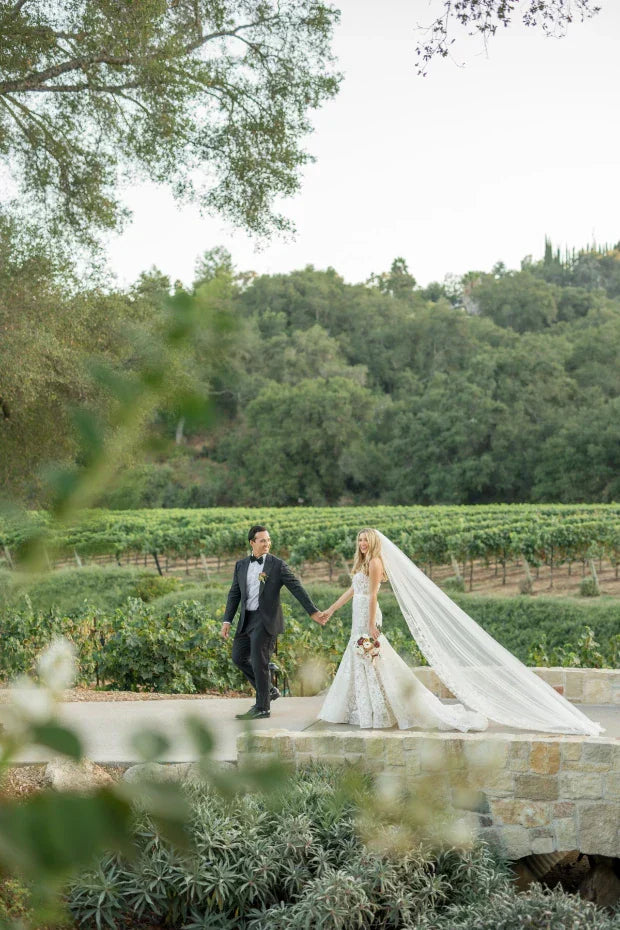 Kari herself looked absolutely stunning in her Serafina Gown, covered in feminine, dainty and 3D floral appliques. Paired with the detachable sleeves, Kari effortlessly transitions from modern chic to romantic.