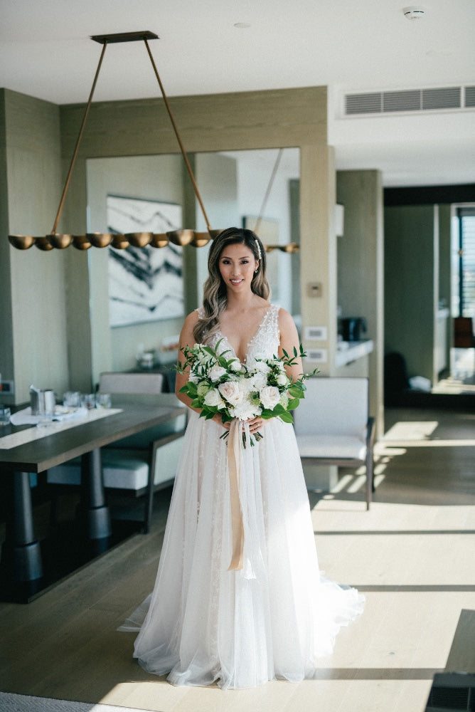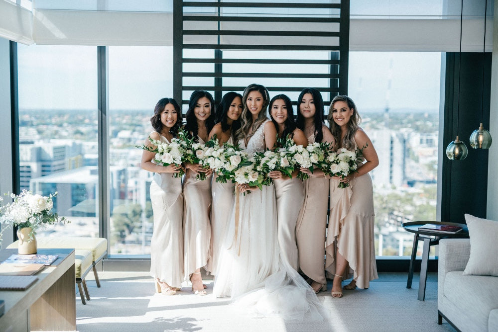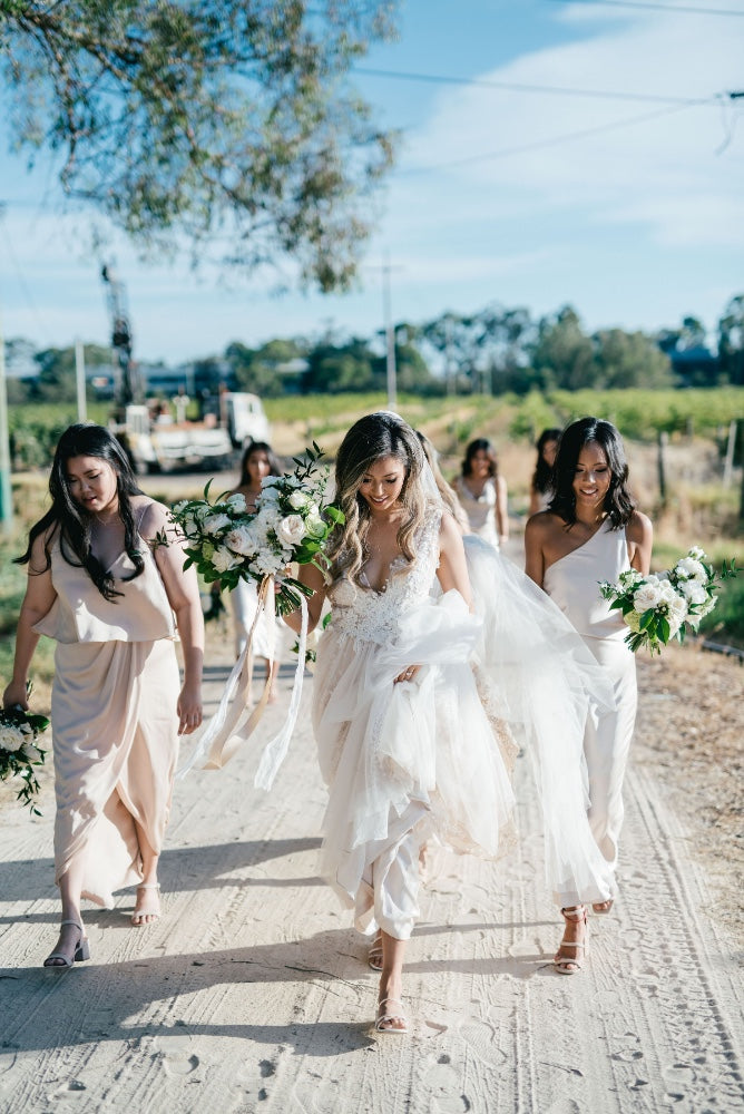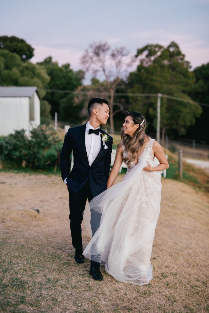 Mingi and Jason's wedding in Perth was an elegant and joyful celebration of their love with their close friends and family. Mingi wore the Feronia gown.