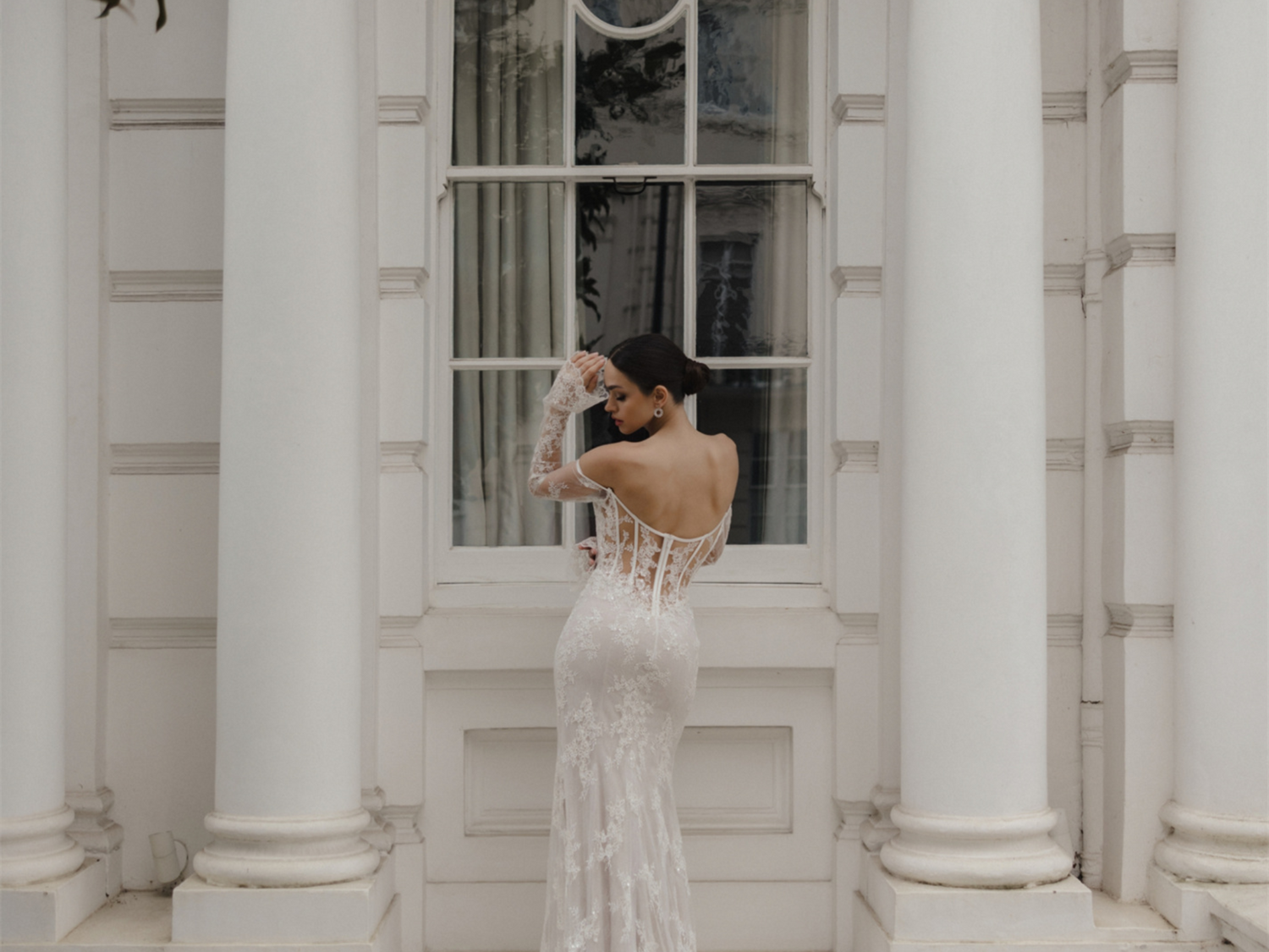 Photographed in London UK, Some of our stand-out dresses from this collection include the Ridge gown, with her mesmerising corset back, and Vivian, our stunning lace ballgown. Not to be forgotten, Antigoni is a favourite with her minimal, sleek, corseted A-line look.