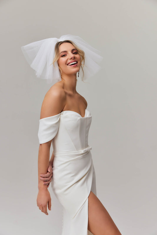 Introducing Lustre, our newest Atelier Wu collection which redefines modern romance with a bold, fashion-forward edge. Featuring sleek two-piece ensembles, artfully pleated chiffon, and dramatic, voluminous skirts, each design captures the essence of structure and softness within Bridal couture.