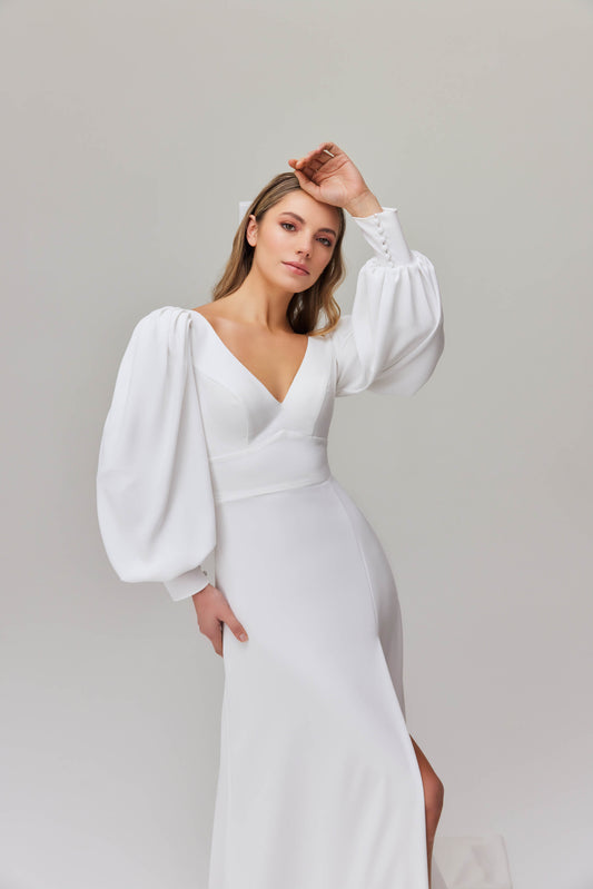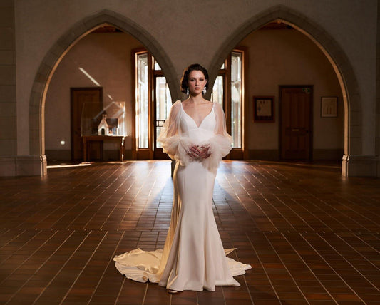 Introducing Lustre, our newest Atelier Wu collection which redefines modern romance with a bold, fashion-forward edge. Featuring sleek two-piece ensembles, artfully pleated chiffon, and dramatic, voluminous skirts, each design captures the essence of structure and softness within Bridal couture.