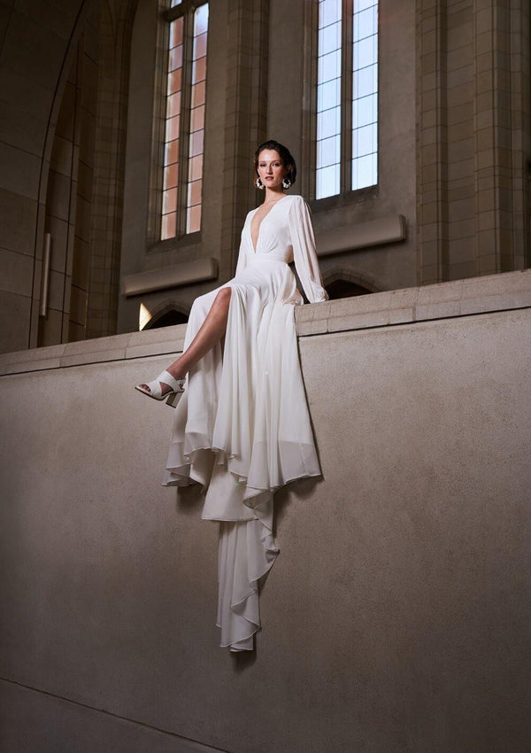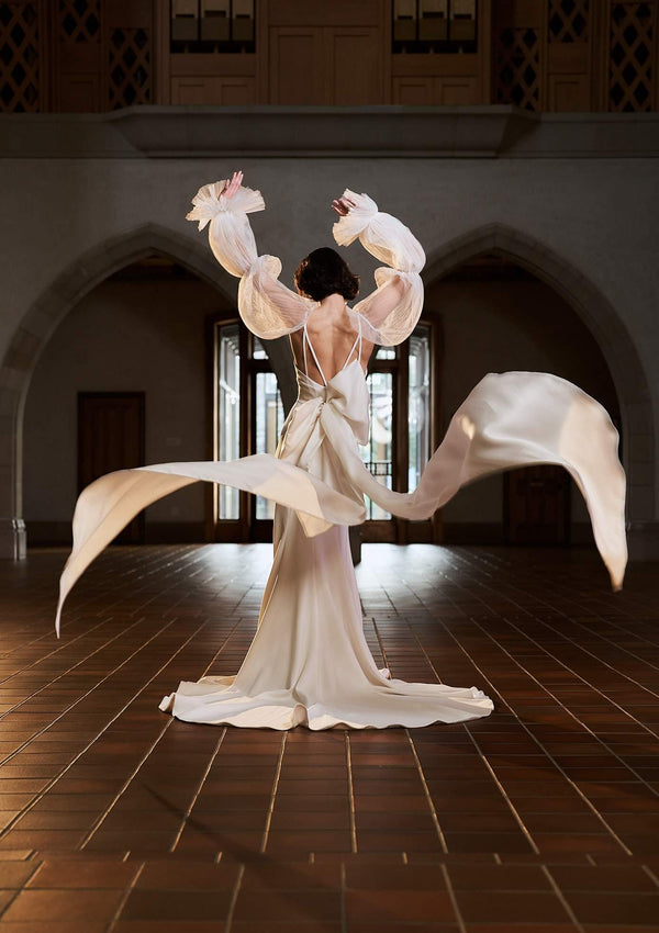 Introducing Lustre, our newest Atelier Wu collection which redefines modern romance with a bold, fashion-forward edge. Featuring sleek two-piece ensembles, artfully pleated chiffon, and dramatic, voluminous skirts, each design captures the essence of structure and softness within Bridal couture.