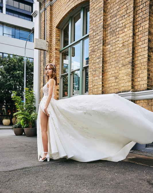 Centering around that feeling of utter bliss as you float through your special day, our new wedding collection offers a wide selection of modern and romantic dresses tailored to your unique taste, no matter what your dream dress looks like.
