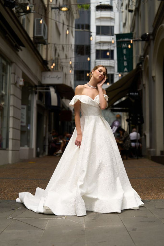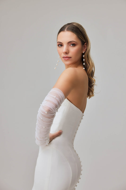 Introducing Lustre, our newest Atelier Wu collection which redefines modern romance with a bold, fashion-forward edge. Featuring sleek two-piece ensembles, artfully pleated chiffon, and dramatic, voluminous skirts, each design captures the essence of structure and softness within Bridal couture.