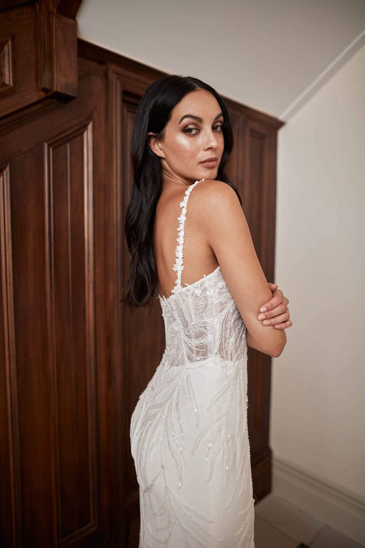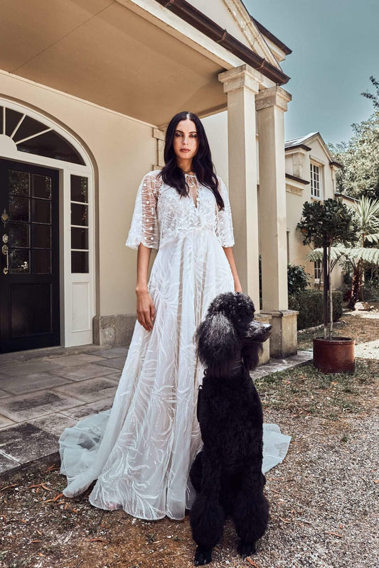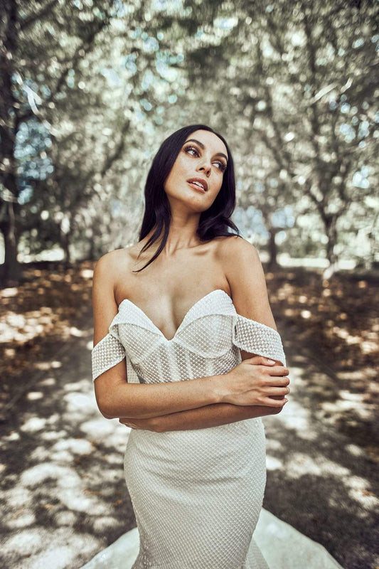 Introducing Lustre, our newest Atelier Wu collection which redefines modern romance with a bold, fashion-forward edge. Featuring sleek two-piece ensembles, artfully pleated chiffon, and dramatic, voluminous skirts, each design captures the essence of structure and softness within Bridal couture.