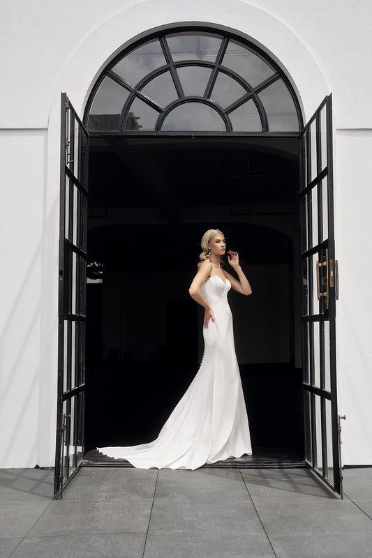 Simple yet stunning, minimal wedding dresses offer minimal to no embellishment and clean lines for an effortless look. Minimal gowns offer a classic and timeless look with the perfect balance of contemporary and traditional. For the sophisticated bride who lets her beauty shine for itself.