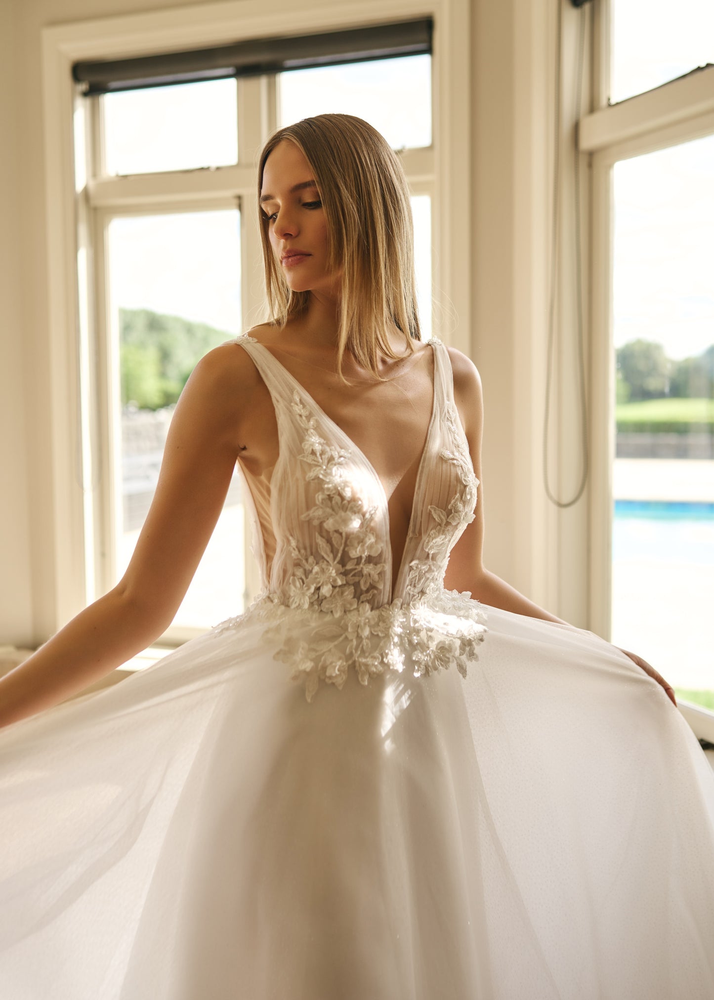 Neckline: V neck plunge illusion
