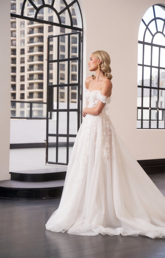 Explore the latest Monarch Collection, a stunning embodiment of femininity and regality that redefines bridal elegance. Our meticulously crafted gowns are designed to capture the essence of a modern monarch, blending timeless sophistication with contemporary allure.