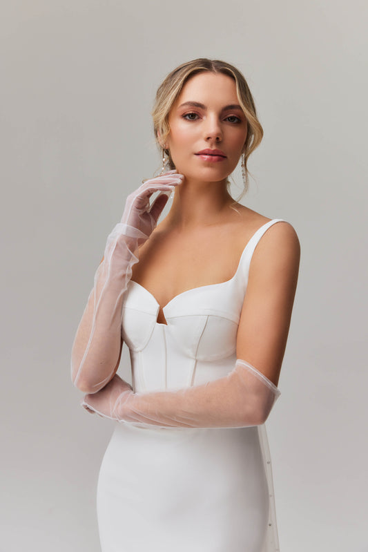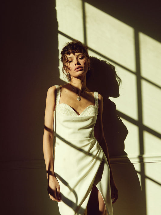Introducing Lustre, our newest Atelier Wu collection which redefines modern romance with a bold, fashion-forward edge. Featuring sleek two-piece ensembles, artfully pleated chiffon, and dramatic, voluminous skirts, each design captures the essence of structure and softness within Bridal couture.