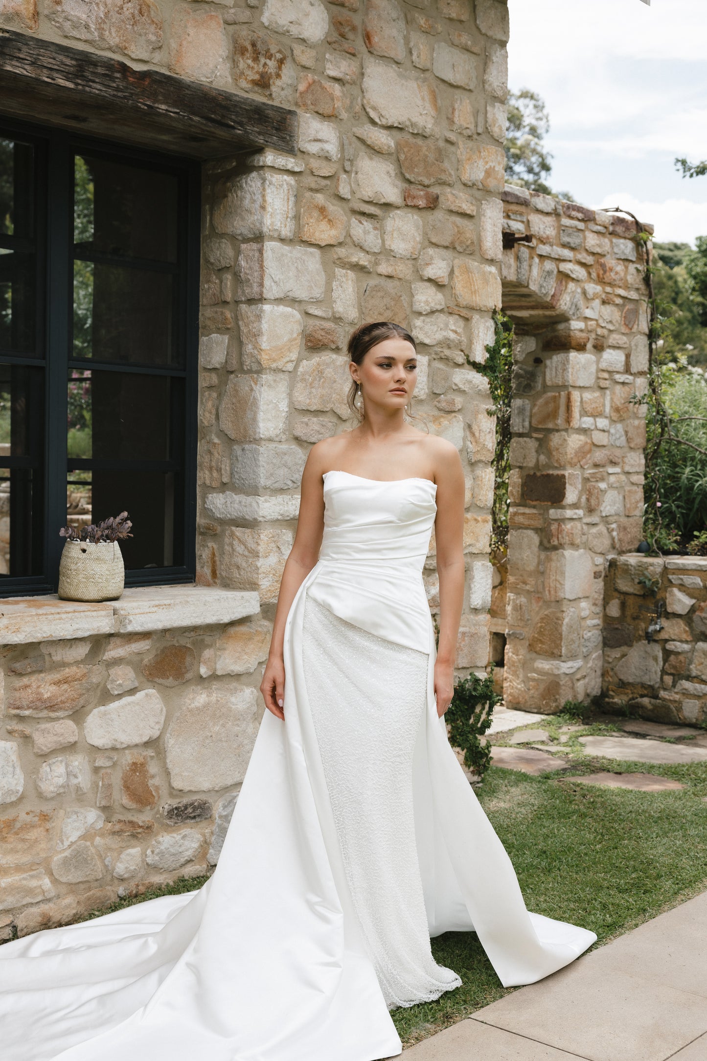 Elevate the look of our Lizzie Gown by personalizing it with our show-stopping overskirt, (which also doubles as a bodice variation). For our brides looking to stun and wow on their big day, this is a look made for the red carpet or a ballroom