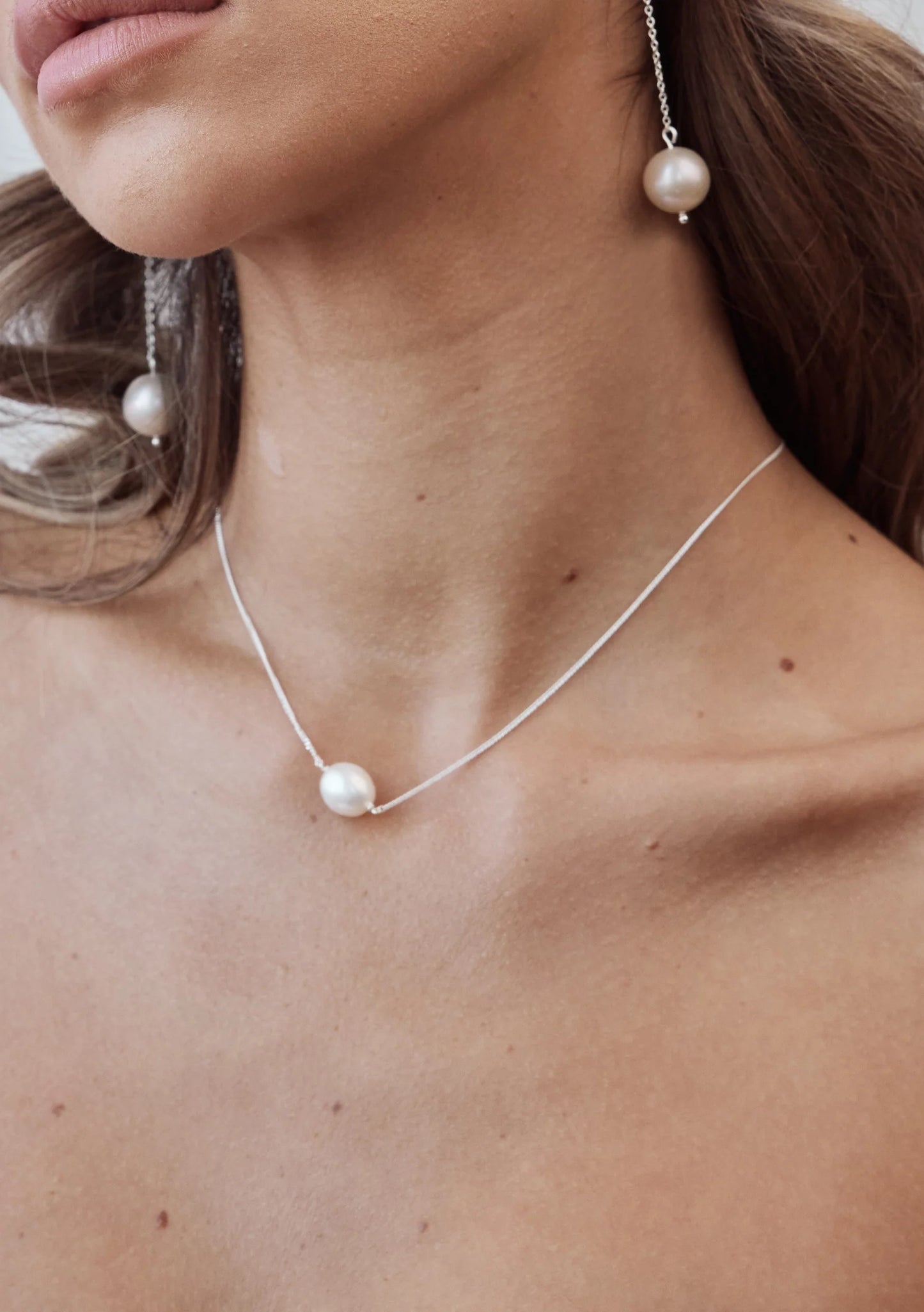 The Clara necklace is made from sterling silver, the design features a freshwater oval pearl. This necklace has an adjustable chain that can be worn from 40-45cm.