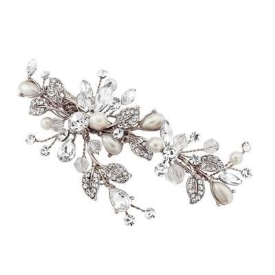 Vintage inspired headpiece - embellished with simulated ivory pearls and high quality clear crystals on a silver finish - a truly elegant design - fitted with a crocodile clip for a perfect fit. Can be worn in various hairstyles.